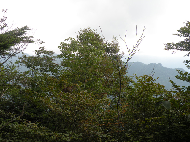 ここはおよそ1400メートル地点。ここから眺める景色はさぞと思いきや・・・見えない。頂上まで高い木々に囲まれてしまっているのです。それでも秩父の町と山々はと、わずかな隙間から周りもうかがうも、ちょうどガスってきたことも手伝って撃沈。登頂の達成感不足です。でもこれは天気が晴れ渡っていても期待できないかな。