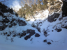 翌朝は多少ガスが出ていたが幸い天気は良くなり、日差しが出てくる中を第二岩峰に取り付く。最初は左にトラバースしてしばらく進み、数十メートルの草付きの岩を直登する。再び最初にPが慎重に登ったのちにザイルを出して確保してもらう。緊張感の高い登攀である。ここまで来てもスキー場の間延びした声が聞こえるのには参った。稜線に出ると一気に視界は開け、頂上小屋が近くに見えてくる。核心を抜けて以降は気持ちが楽になり、ラッセルも苦にならなくなる。第三岩峰は右に巻いてハイマツの枝を支えに引っ張り上げるようにして力任せに登る。そこまで来ると赤岳への一般道を行く登山者の姿も見える。ハイマツの上を歩いて竜頭峰に到着した。風が強かった。帰りの時間を考えて赤岳山頂には寄らずに文三郎道をまっすぐ行者小屋まで降りた。軽い吹雪ではあったが下りは快速で、Pはシリセードで一気に降りてしまった。行者小屋からは平坦な道を歩いて美濃戸のバス停に降りた。
