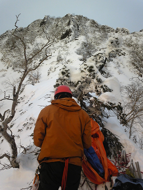 大門沢から入る赤岳東壁には積雪期の八ヶ岳において数少ない本格的なバリエーションルートがいくつかあるという。中でも二俣の間を正面から取り付く東稜は、重厚な雪山登攀が楽しめる本格的なルートとして知られている。今回は年末の寒波で雪の量も多く、雪山の醍醐味を嫌というほど味わう事ができた。