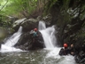 水量が多く、釜と滝の連続で濡れっぱなしだったが、特に悩む部分もなく2条の滝に到着。
